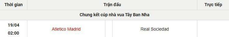 Atletico Madrid vs Real Sociedad (02h00 ngày 19/04, chung kết Cúp nhà vua Tây Ban Nha)