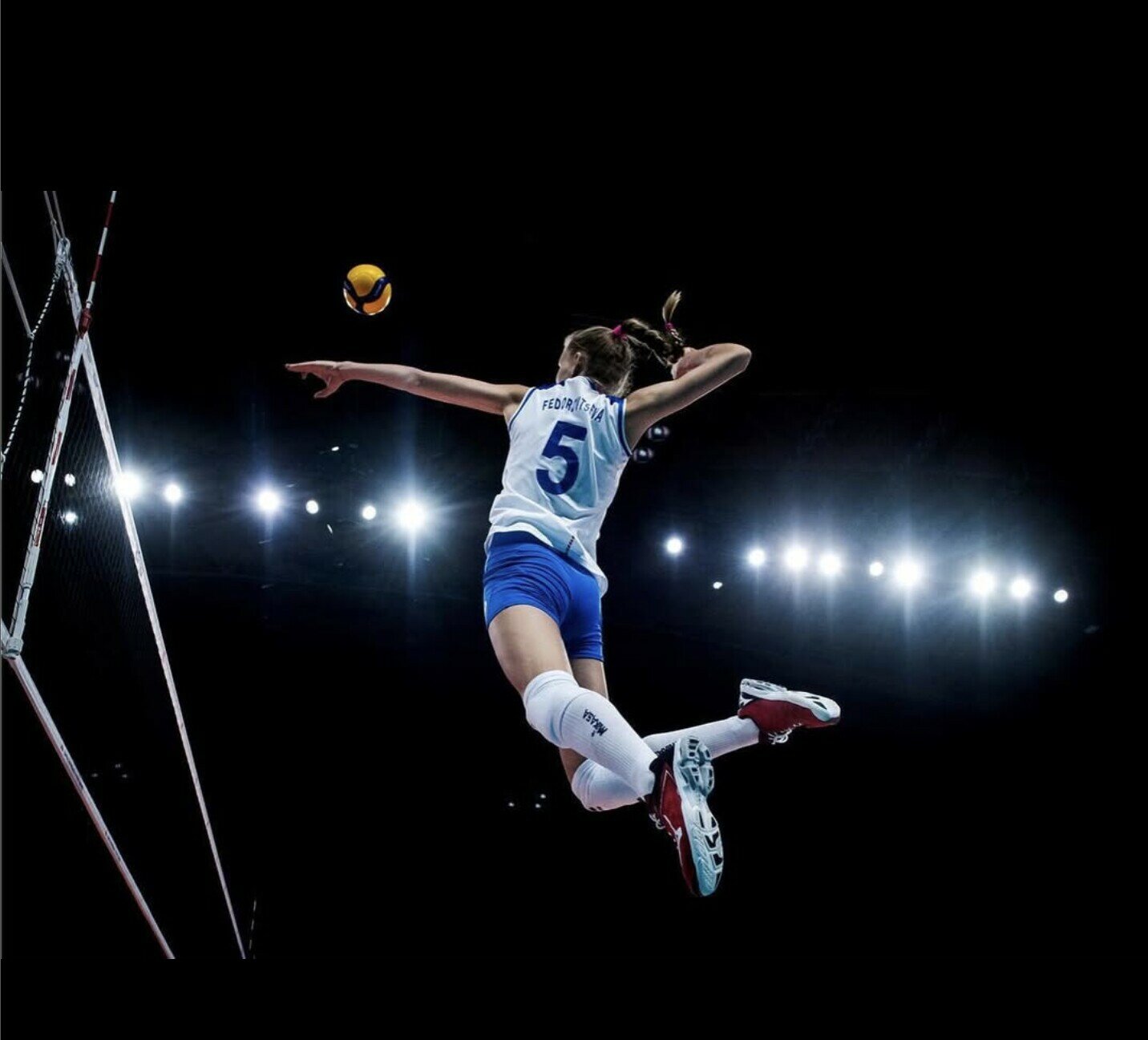 Arina Fedorovtseva – vận động viên bóng chuyền sinh năm 2004, sở hữu chiều cao ấn tượng 1m91 đến từ Nga. Cô được xem là “viên ngọc sáng” của làng bóng chuyền Nga trong những năm gần đây, khi mới 17 tuổi đã góp mặt trong danh sách tham dự VNL 2021 và Thế vận hội Tokyo 2021 – hai trong số những giải đấu danh giá nhất của bộ môn bóng chuyền. Arina để lại ấn tượng sâu sắc trong lòng người hâm mộ bởi những pha phát bóng uy lực, khả năng tấn công quyết đoán, cùng lối chơi mạnh mẽ, nhiệt huyết. Bên cạnh tài năng thể thao, cô còn thu hút ánh nhìn bởi vẻ đẹp trong trẻo và nụ cười rạng rỡ trên sân đấu.