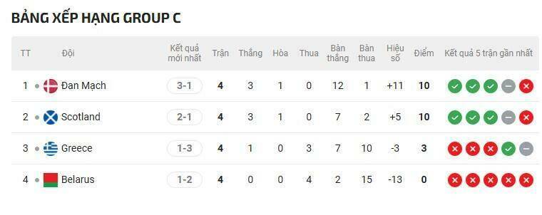 Ở bảng C, cả Đan Mạch và Scotland đều có chiến thắng quan trọng để duy trì thế song mã trên đường đến World Cup 2026. Đan Mạch đánh bại Hy Lạp 3-1 nhờ các bàn thắng của Højlund, Andersen và Damsgaard, tiếp tục thể hiện sức mạnh vượt trội với hiệu suất tấn công ổn định. Trong khi đó, Scotland vượt qua Belarus 2-1 nhờ công của Che Adams và Scott McTominay, qua đó giữ vững vị trí thứ 2 tại bảng đấu. Sau loạt trận này, hai đội đều có 10 điểm, nhưng Đan Mạch tạm dẫn đầu nhờ hiệu số bàn thắng tốt hơn. Cuộc đua giành vé trực tiếp giờ đây gần như chỉ còn giữa hai đội tuyển Đan Mạch cùng Scotland, và nhiều khả năng trận đối đầu trực tiếp ở lượt trận cuối cùng vào tháng sau sẽ là “chung kết” định đoạt ngôi nhất bảng. Scotland đã chắc suất dự play-off, trong khi Đan Mạch chỉ cần giữ ổn định phong độ để giành tấm vé chính thức.