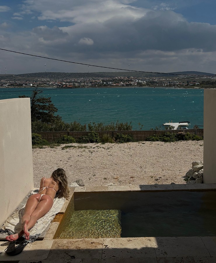 Kayla Simmons, cựu vận động viên bóng chuyền người Mỹ, tiếp tục khiến cộng đồng mạng xôn xao khi chia sẻ loạt ảnh mới trên Instagram. Trong chuyến nghỉ dưỡng tại Alacati, một thị trấn nổi tiếng thuộc bán đảo Cesme của Thổ Nhĩ Kỳ, Kayla xuất hiện rạng rỡ bên hồ bơi nhỏ với bộ bikini trắng nổi bật. Những bức hình này nhanh chóng nhận được sự chú ý lớn từ người hâm mộ nhờ phong cách tạo dáng tự tin và vẻ đẹp quyến rũ đặc trưng của cô.