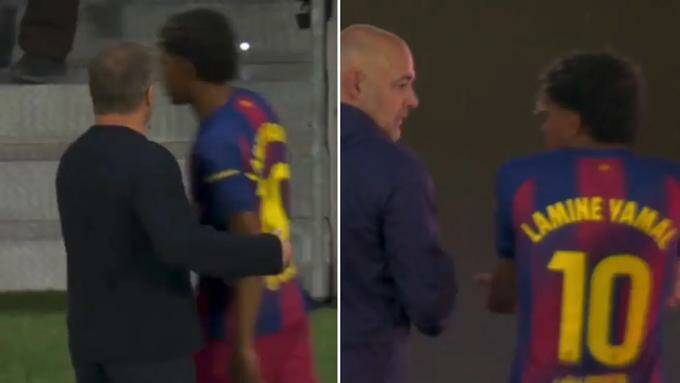 Không dừng lại ở đó, trên đường rời sân, Yamal tiếp tục thể hiện sự khó chịu khi liên tục ra hiệu và trao đổi với thành viên ban huấn luyện Jose Ramon de la Fuente. Đỉnh điểm là khi HLV Hansi Flick tiến đến chúc mừng, cầu thủ 18 tuổi này lại đáp lại theo cách khiến vị chiến lược gia người Đức bất ngờ. Dù vậy, Flick đã nhanh chóng xoa dịu tình hình, phủ nhận việc Yamal tức giận vì màn trình diễn cá nhân.