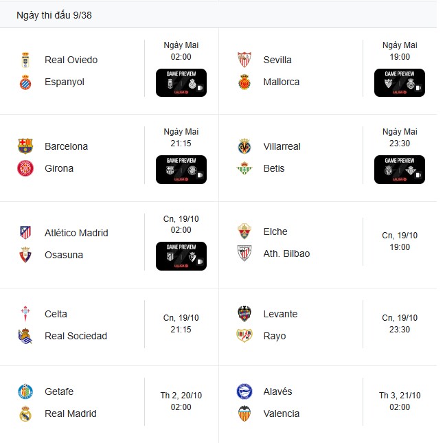 Vòng 9 La Liga 2025/2026 hứa hẹn mang đến loạt trận căng thẳng và đầy ẩn số với những cặp đấu đáng chú ý đến từ 3 ông lớn của bóng đá Tây Ban Nha lúc này là Barcelona, Real Madrid và Atletico Madrid. Hãy cùng điểm qua những cặp đấu hấp dẫn này ngay sau đây.