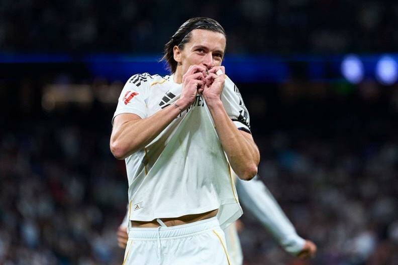 Real Madrid tiếp tục thể hiện phong độ ấn tượng khi đánh bại Valencia 4-0 trên sân nhà Santiago Bernabeu. Đáng chú ý, hậu vệ trẻ Alvaro Carreras đã ghi dấu ấn đậm nét với bàn thắng đầu tiên cho đội bóng Hoàng gia bằng một cú sút xa đẹp mắt ở phút 82, khép lại một đêm thi đấu hoàn hảo dưới thời HLV Xabi Alonso.