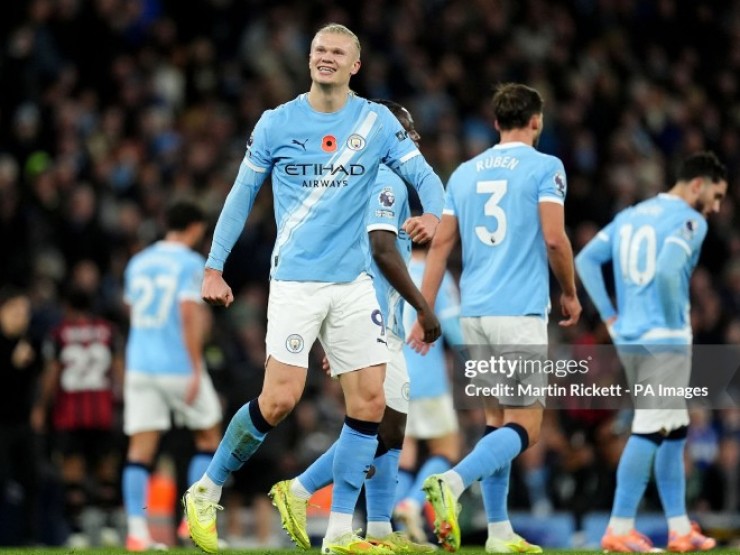 Manchester City vừa có chiến thắng 3–1 trước Bournemouth trên sân Etihad tại vòng 10 Ngoại Hạng Anh 2025/2026, qua đó vươn lên vị trí thứ hai với 19 điểm, chỉ còn kém Arsenal 6 điểm trên bảng xếp hạng. Ở trận này, Erling Haaland tỏa sáng rực rỡ với một cú đúp ngay trong hiệp một, trước khi Nico O’Reilly ấn định tỷ số 3–1 sau giờ nghỉ. Kết quả này không chỉ giúp Man City tìm lại cảm hứng chiến thắng mà còn chấm dứt chuỗi 8 trận bất bại đầy ấn tượng của Bournemouth từ đầu mùa đến nay. Với hai bàn thắng, Haaland đã nâng tổng số lên 13 bàn sau 10 trận, tiếp tục dẫn đầu danh sách Vua phá lưới mùa này.