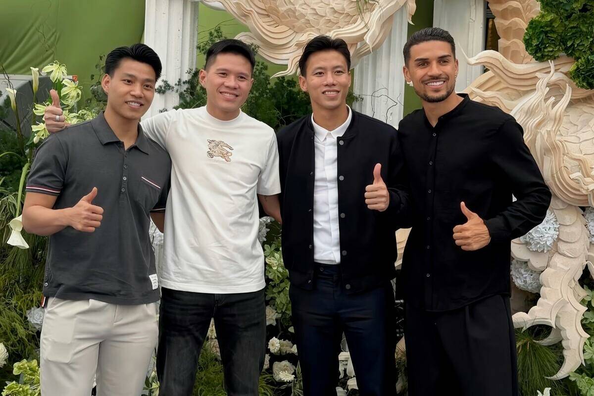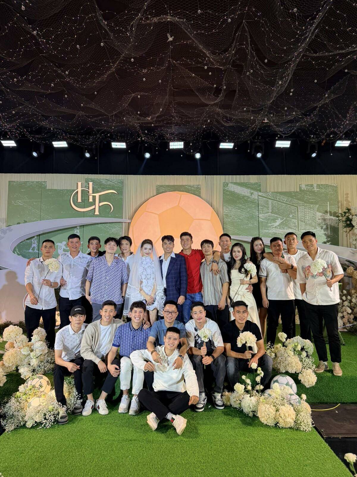 Không chỉ gây chú ý bởi phong cách thời trang, Văn Toàn còn khiến người hâm mộ bật cười khi đeo thẻ "trông xe đám cưới", thể hiện sự gần gũi, hài hước vốn có. Đỗ Duy Mạnh chọn phong cách năng động, đăng ảnh cùng tân lang, tân nương và các đồng đội, kèm chú thích đầy cảm xúc: "U19 Việt Nam (ngày xưa) và U23 Thường Châu 2018 chúc mừng hạnh phúc hoàng tử Đức Huy".
