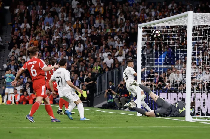 Trận đại chiến trên sân Santiago Bernabeu diễn ra với tốc độ cao ngay từ những phút đầu, đúng kỳ vọng về màn so tài giữa hai thế lực hàng đầu châu Âu, Real Madrid và Bayern Munich. Đội khách nhập cuộc tốt hơn, chủ động kiểm soát bóng và gây sức ép liên tục lên khung thành chủ nhà.