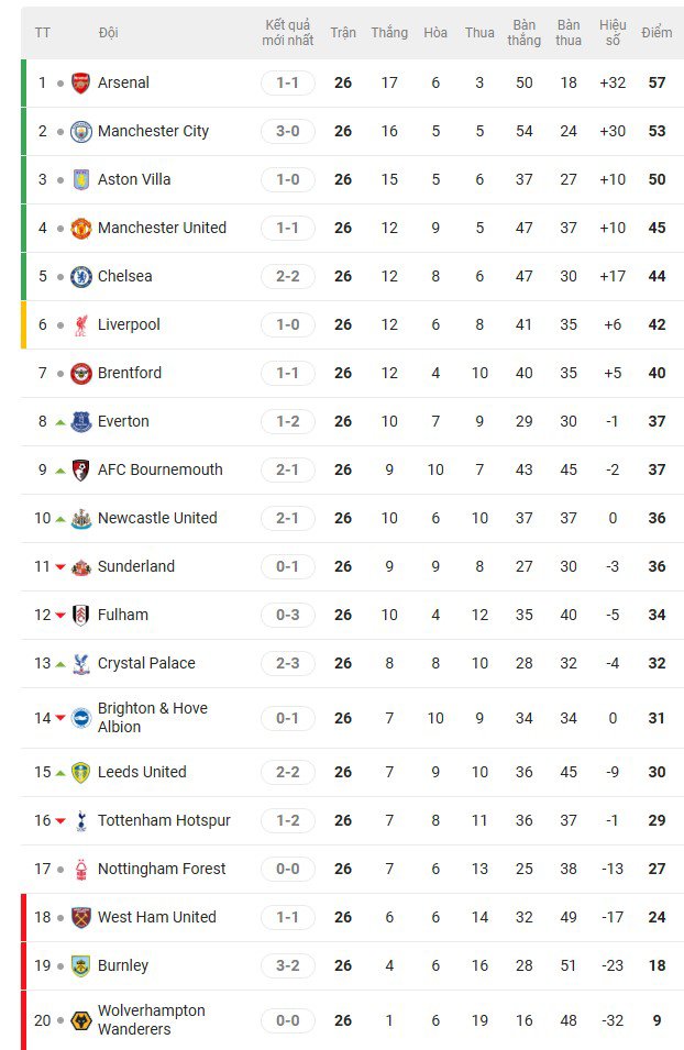 Những phút cuối trận diễn ra nghẹt thở khi cả hai đội đều có cơ hội định đoạt số phận trận đấu, nhưng sự xuất sắc của các thủ môn và hàng thủ đã giữ nguyên tỷ số 1-1. Kết quả này khiến Arsenal chỉ còn hơn Man City 4 điểm (57 so với 53), khiến cuộc đua vô địch Premier League trở nên nóng bỏng hơn bao giờ hết. Brentford tiếp tục gây ấn tượng mạnh, vững vàng ở vị trí thứ bảy và chỉ còn kém Liverpool hai điểm trong cuộc đua giành vé dự cúp châu Âu.