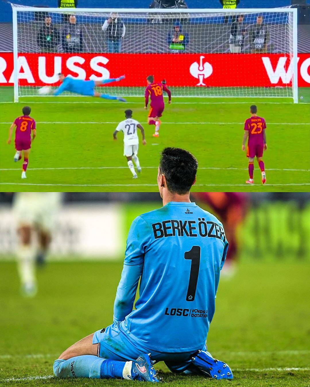 ❌ Cuối trận, Roma được hưởng phạt đền và Artem Dovbyk bước lên chấm 11m. Cú sút của tiền đạo Roma dễ dàng bị thủ môn Berke Özer (Lille) cản phá.