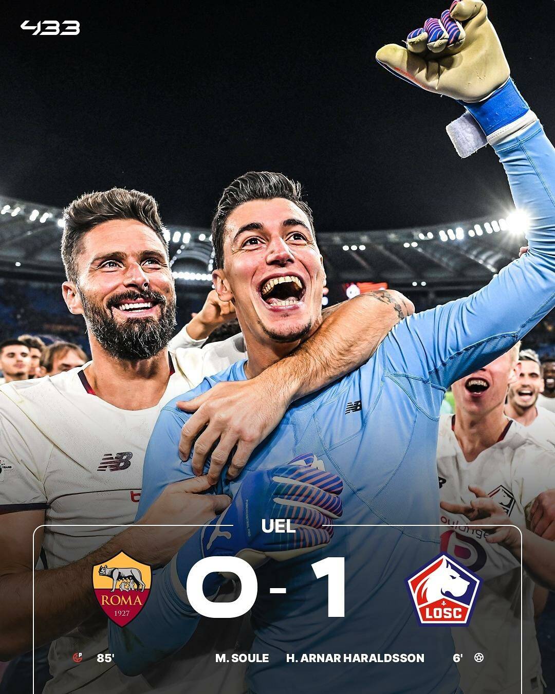 ❌ AS Roma thua 0-1 Lille ở lượt 2 vòng phân hạng Europa League.