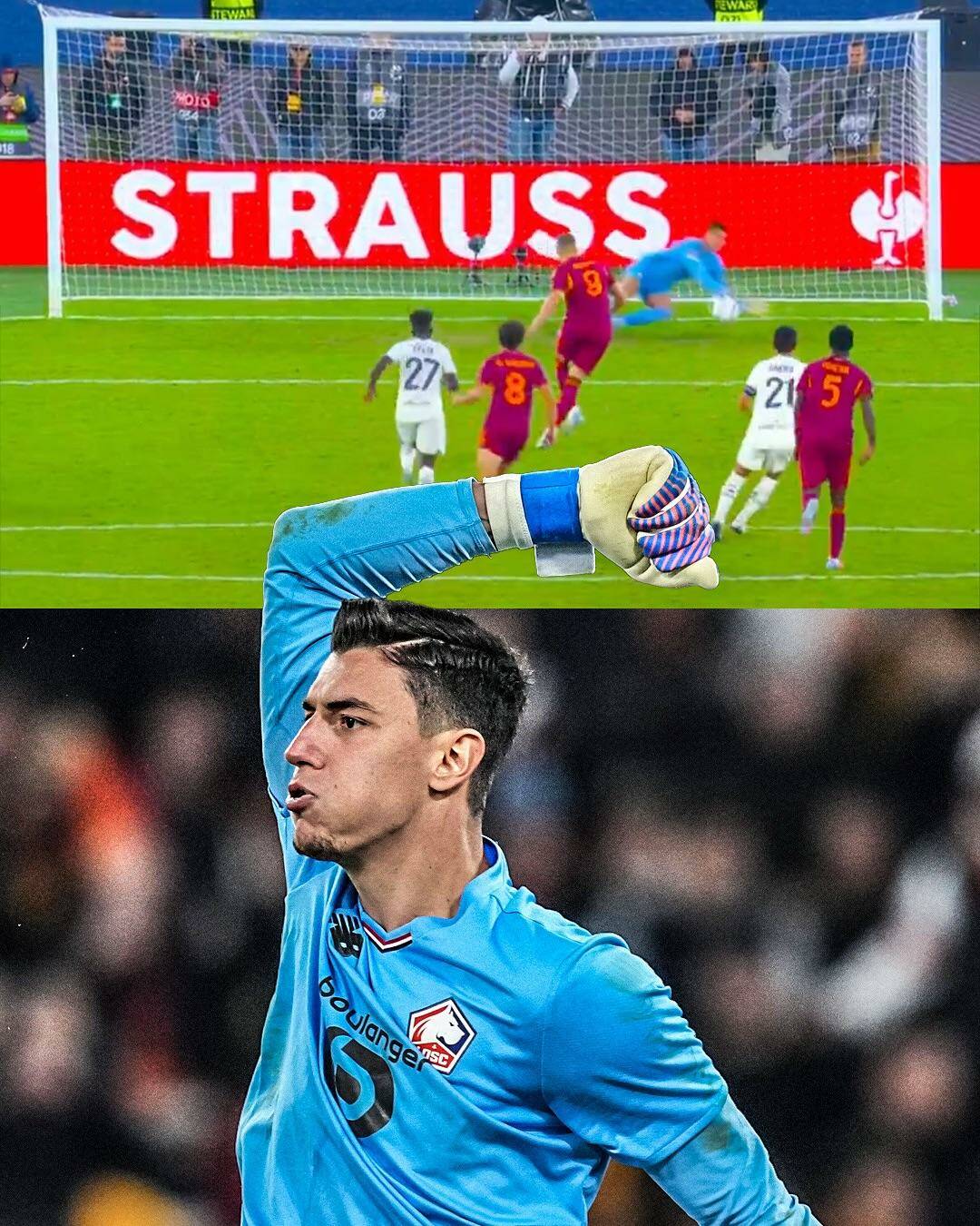 ❌ Trọng tài cho Roma đá lại vì xác định cầu thủ Lille lao vào vòng cấm quá sớm khi Dovbyk dứt điểm. Sau đó, chính Dovbyk tiếp tục nhận trách nhiệm đá lại, nhưng kết quả vẫn y hệt. Anh sút cùng góc, cùng cách đá rất nhẹ và vẫn bị Özer cản phá.