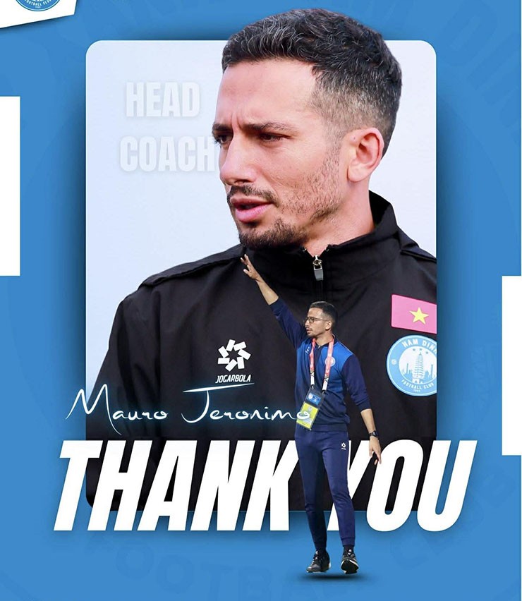 Những ngày đầu tháng 5, CLB Thép Xanh Nam Định bất ngờ trở thành tâm điểm chú ý của truyền thông khu vực khi HLV Mauro Jeronimo chính thức nói lời chia tay đội bóng. Quyết định này được đánh giá là khá đột ngột, nhất là khi đội bóng thành Nam vừa giành vé vào bán kết Shopee Cup nhưng lại đang trải qua chuỗi 4 trận không thắng. Sự ra đi của chiến lược gia người Bồ Đào Nha khiến không ít người hâm mộ và giới chuyên môn đặt dấu hỏi về khả năng duy trì sự ổn định của Nam Định trong giai đoạn then chốt của mùa giải.