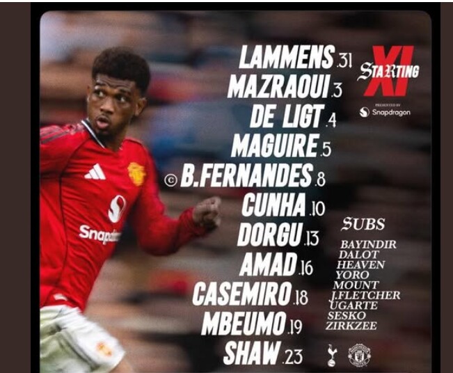 Amorim tiếp tục cho thấy tư duy chiến thuật linh hoạt khi bố trí đội hình không có trung phong cắm thực thụ, thay vào đó là hệ thống pressing tầm trung với Mbeumo, Cunha và Amad Diallo di chuyển linh hoạt ở phía trên.