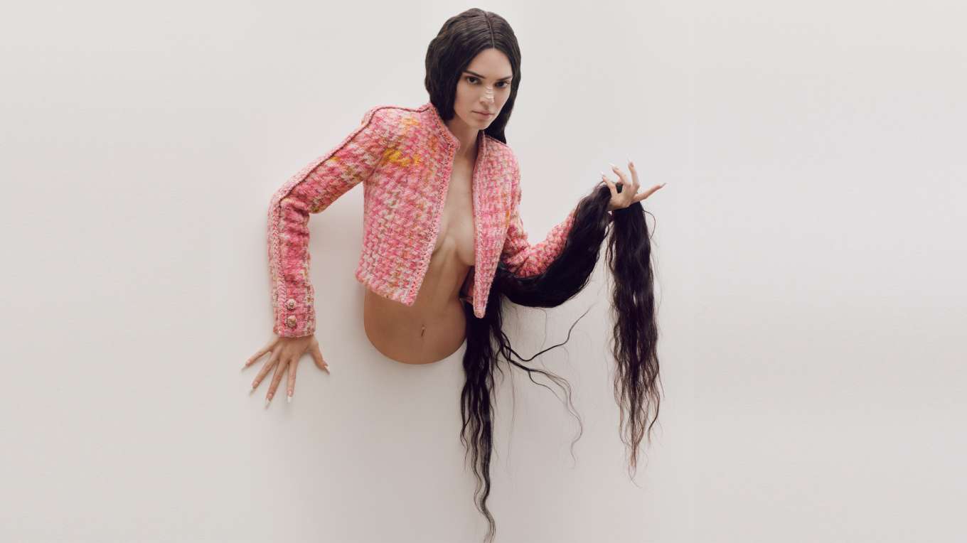 Concept của buổi chụp hình mang màu sắc ma mị, khác lạ, không giống như những bức ảnh thời trang thông thường. Maurizio Cattelan từng rất nổi tiếng với tác phẩm gắn đầu ngựa vào bức tường, tương tự như cách Kendal Jenner tạo dáng trong tấm hình trên. Ngoài mái tóc xoăn lọn nhỏ dài màu đen ấn tượng, cô còn đeo hoa tai của Cartier.