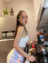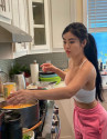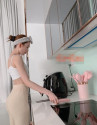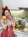 Quỳnh Nga gây chú ý khi mặc váy ngủ gợi cảm vào bếp nấu ăn.