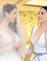 Minh Hằng từng được bình chọn là người đẹp mặc trang phục gợi cảm nhất đám cưới Đông Nhi với bộ váy trễ nửa ngực.