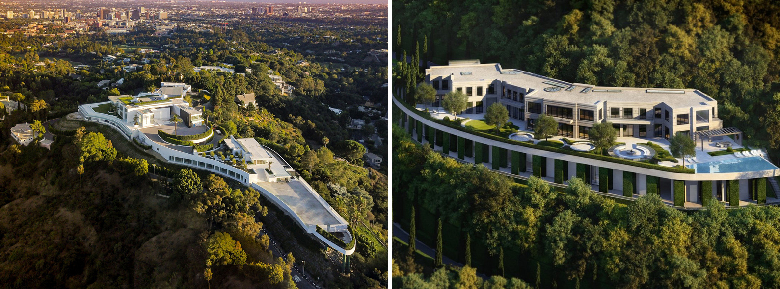 Tương tự, Park Bel Air tại Los Angeles cũng là một bất động sản nổi tiếng và được giới thượng lưu săn đón. Ngôi biệt thự nằm bên vách đá trên một khu đất rộng 4,3ha với tầm nhìn bao quát thành phố, hẻm núi và đại dương, được trang trí độc bản với nhiều món đồ độc lạ như gỗ Brazil nhập khẩu, pha lê Swarovski… theo yêu cầu của chủ nhân.