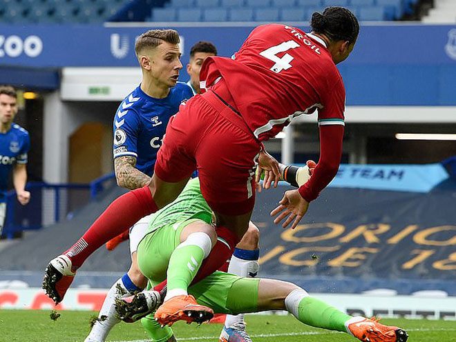 Pickford không phải nhận bất kỳ án phạt nào dù va chạm mạnh với Van Dijk