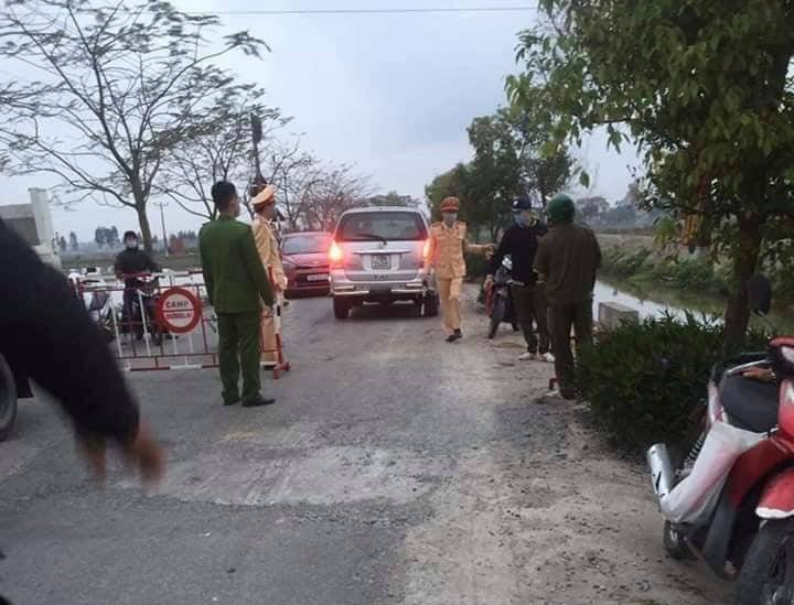 Lực lượng chức năng lập chốt tại xã Hoàng Động (Thuỷ Nguyên, Hải Phòng).