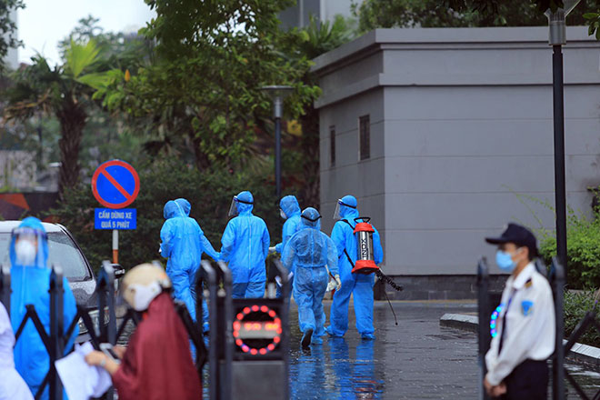 Theo UBND quận Bắc Từ Liêm, sau khi chị H. có kết quả dương tính, quận đã truy vết các trường hợp liên quan, lên phương án chi tiết, triển khai khoanh vùng, phong toả đối với tầng 23 toà R4A. Phối hợp với lực lượng y tế lấy mẫu xét nghệm đối với 30 F1, 178 trường hợp liên quan, bảo vệ, ban quản trị toà nhà và người dân tại tầng 23 toà R4A.