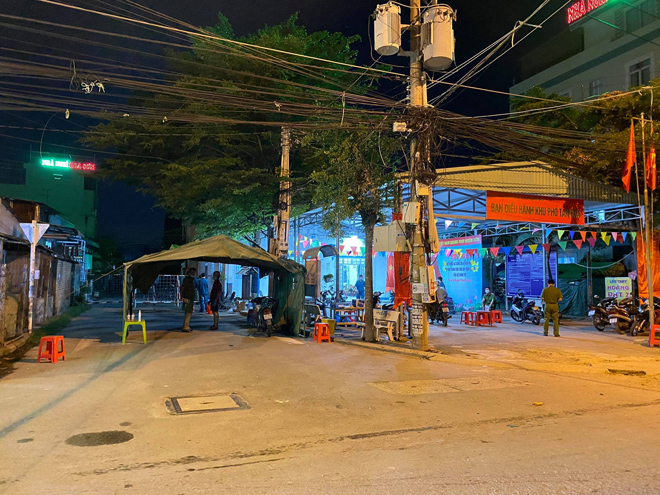 Tối 28/5, lực lượng chức năng phường Đông Hòa, TP Dĩ An vẫn đang tổ chức phong tỏa nghiêm ngặt con hẻm trên đường Tô Vĩnh Diện. Con hẻm nơi đây bị phong tỏa vì có trường hợp F1 của ca nghi mắc COVID-19 ở TP.HCM sinh sống.