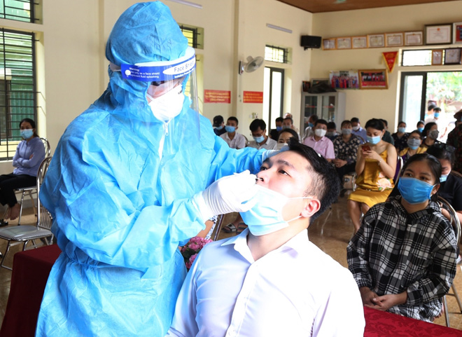 Lực lượng y tế Hà Tĩnh lấy mẫu xét nghiệm COVID-19 cho người dân. Ảnh Báo Hà Tĩnh.