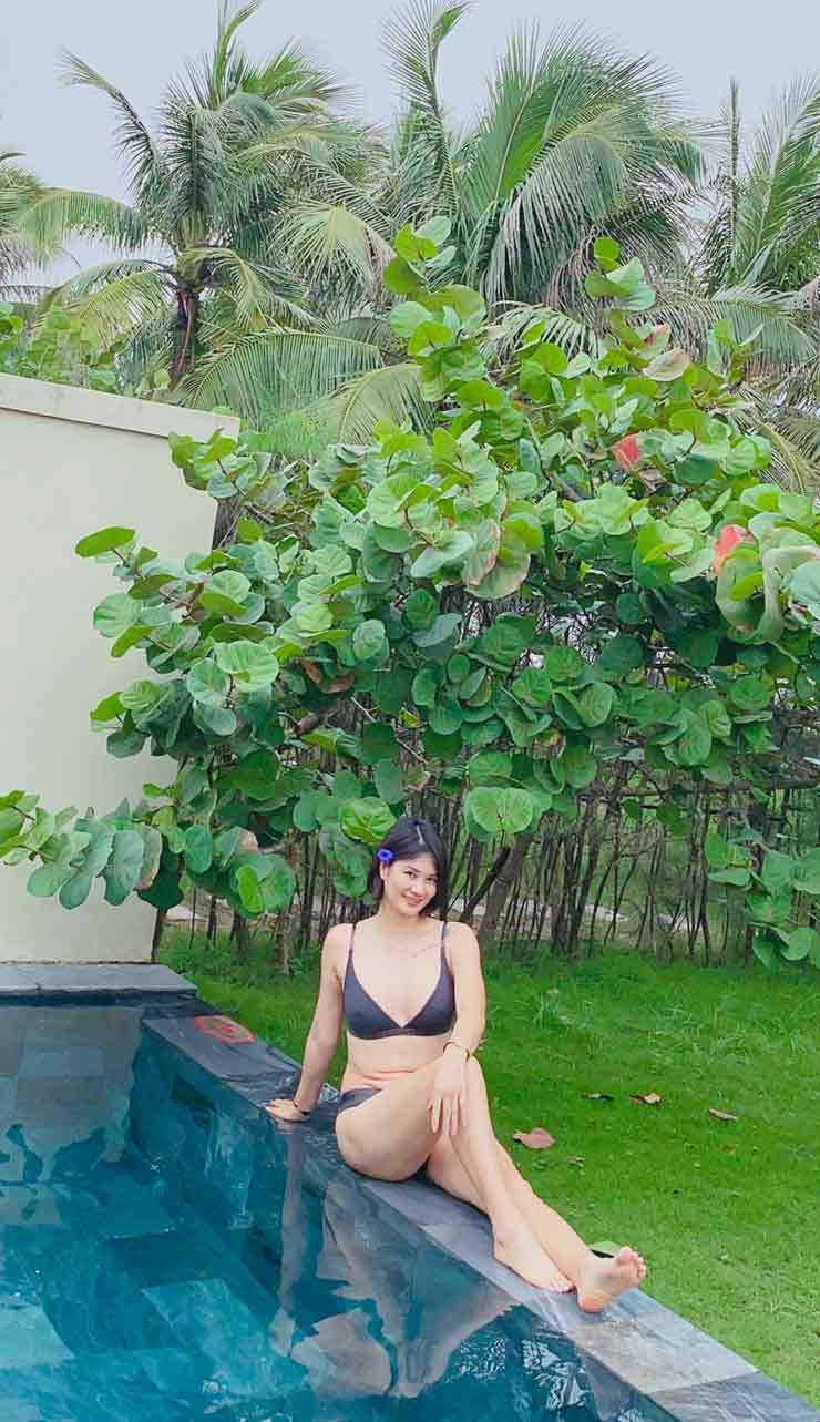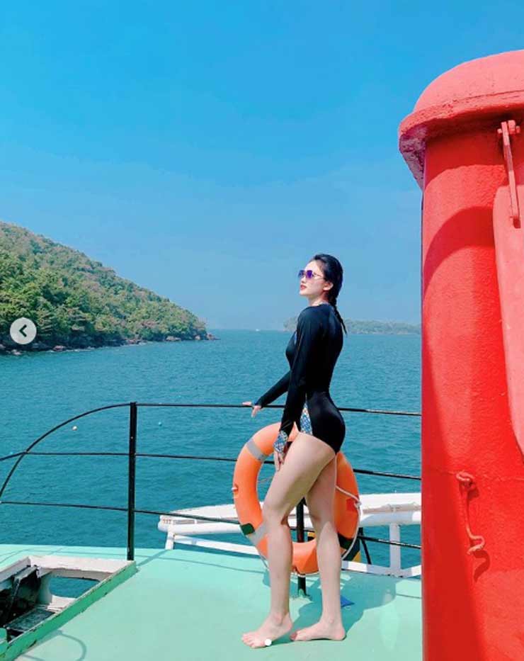 Khoảnh khắc tạo dáng nghệ thuật của hot girl bóng chuyền sinh ra ở Quỳnh Phụ (Thái Bình) khi đi nghỉ mát ở đảo Phú Quốc