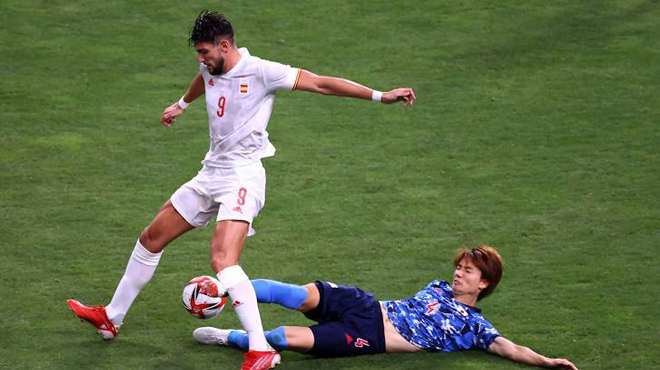 Tây Ban Nha có pha phối hợp ăn ý trong vòng cấm Nhật Bản nhưng Oyarzabal lại dứt điểm đúng vào vị trí của thủ môn Tani.