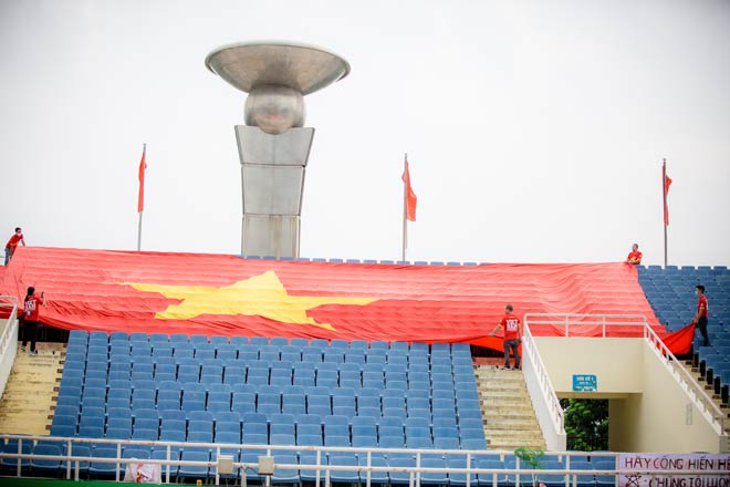 Sau khi xin phép các cơ quan chức năng, cũng như làm các thủ tục cần thiết (xét nghiệm RT- PCR), sáng nay (7/9), Hội CĐV Việt Nam (VFS Miền Bắc) đã mang lá đại kỳ 500m2 tới sân Mỹ Đình và được các CĐV trải sẵn ở khán đài C của SVĐ Mỹ Đình, cùng với lời nhắn nhủ "Hãy cống hiến hết mình chúng tôi luôn ở bên bạn". Đây có thể là liều “doping tinh thần” từ khán đài mà các CĐV mang tới cho các cầu thủ, dù không được phép đến sân cổ vũ.