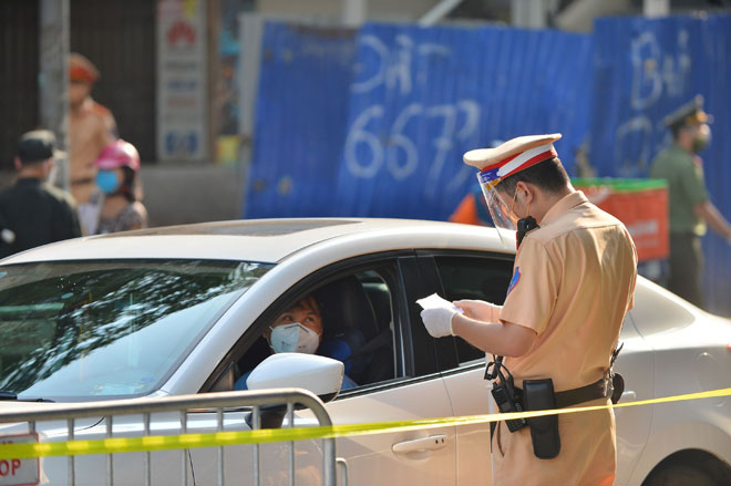 Lực lượng chức năng kiểm tra giấy đi đường của người dân