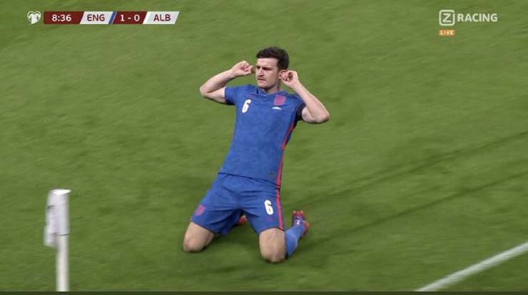 Maguire trượt cỏ & đặt 2 tay lên tai ăn mừng sau bàn mở tỷ số vào lưới Albania