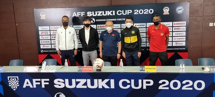 HLV Park Hang Seo cùng huấn luyện viên trưởng của 4 đội tuyển của bảng B gồm HLV Tan Cheng Hoe (Malaysia), Shin Tae Yong (Indonesia), Keisuke Honda (Campuchia) và V. Selvaraj (Lào) sẽ trả lời các câu hỏi của giới truyền thông liên quan đến các trận đấu của bảng B.