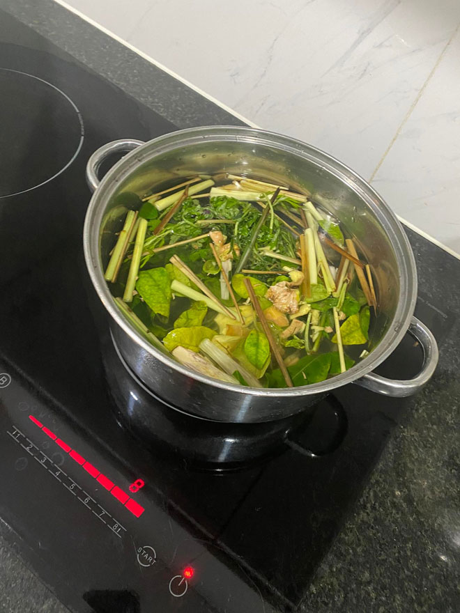 Nồi nước xông không thể thiếu khi những gia đình có người dương tính với SARS-CoV-2.
