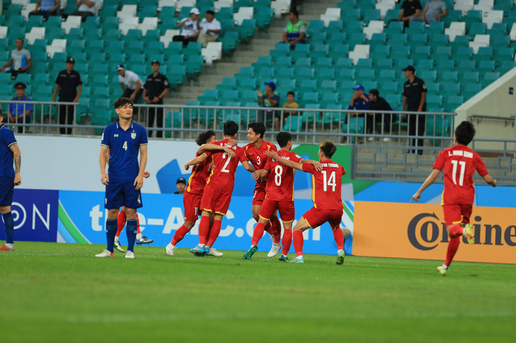 Cũng bắt nguồn từ một pha lên bóng như vậy, tiền đạo Văn Tùng đã vung chân volley đẹp mắt để giúp U23 Việt Nam vượt lên dẫn 2-1. Bàn thua buộc U23 Thái Lan phải đẩy cao đội hình trong khi U23 Việt Nam tỏ ra xuống sức trong những tình huống tranh chấp ở khu trung tuyến.
