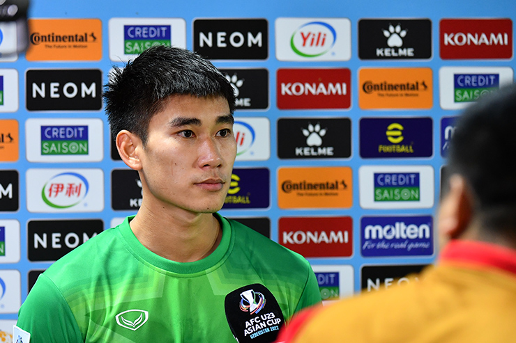 Nhâm Mạnh Dũng trả lời phỏng vấn sau trận gặp U23 Saudi Arabia.