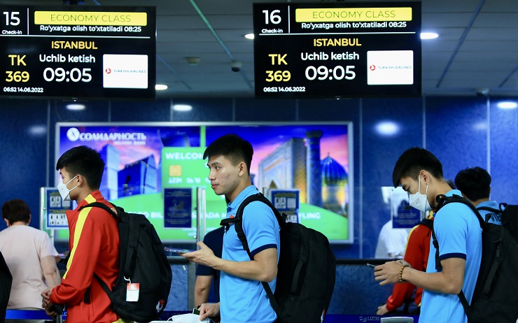 Sáng 14/6, HLV Gong Oh Kyun cùng một số tuyển thủ U23 Việt Nam đã có mặt tại sân bay của Uzbekistan để lên đường về nước