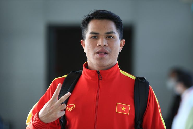Dụng Quang Nho là một trong số tuyển thủ U23 Việt Nam đầu tiên đặt chân về tới quê hương