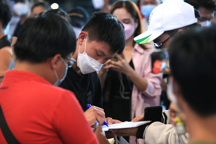 Các cầu thủ được người hâm mộ vây quanh xin chữ ký