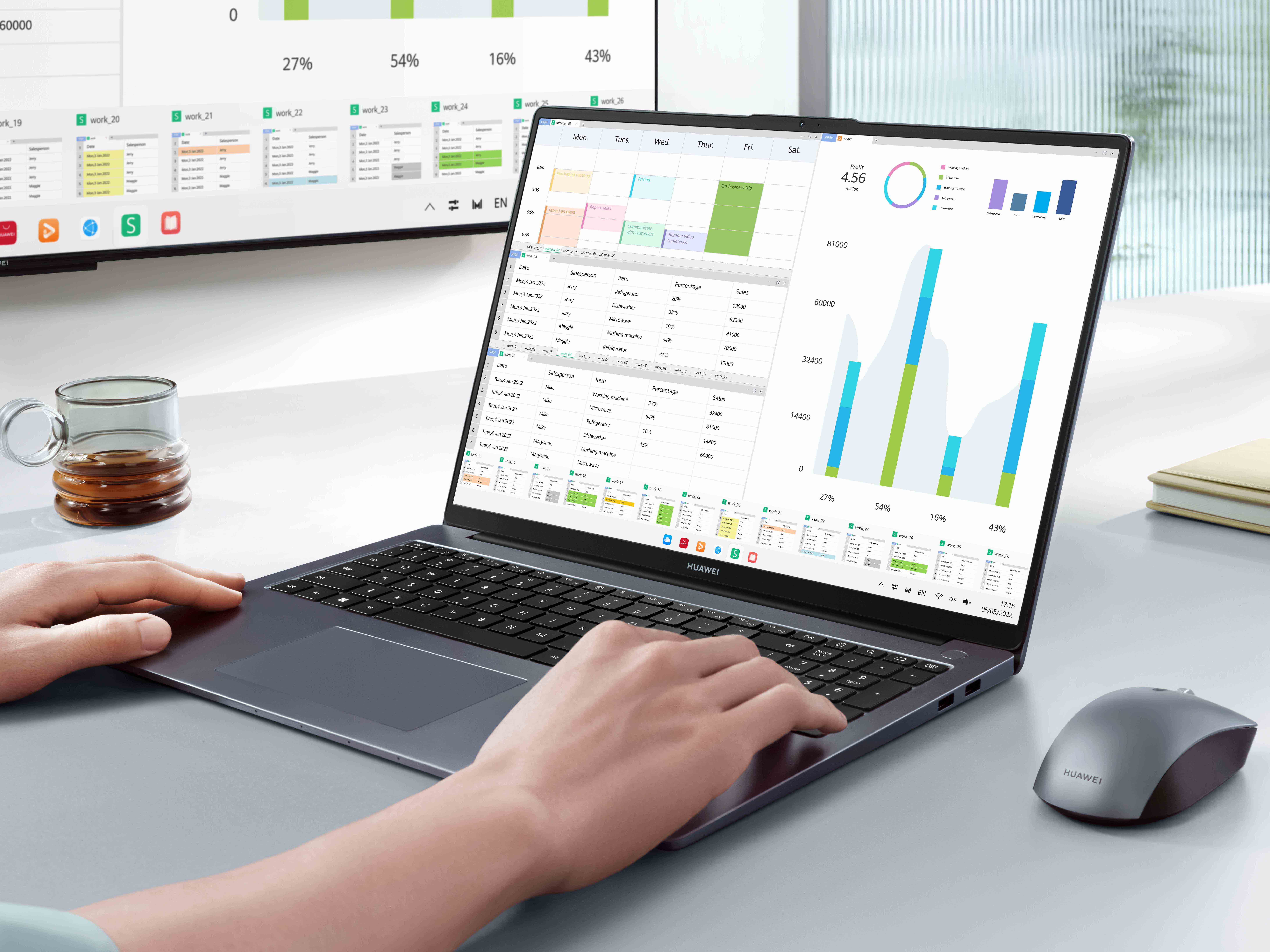 Cụ thể, Huawei tích hợp cho sản phẩm của mình màn hình 16 inch, độ phân giải 1920 x 1200 pixel (FullHD+), độ sáng tối đa 300 nit, hiển thị sáng, khá sắc nét, viền màn hình mỏng. Đặc biệt, webcam được đặt gọn trong viền siêu mỏng.