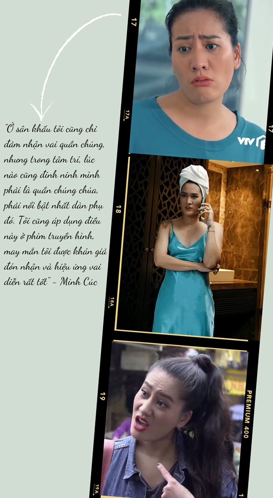 Hồi trước, ở sân khấu tôi cũng chỉ đảm nhận vai quần chúng, nhưng trong tâm trí lúc nào cũng đinh ninh mình phải là quần chúng chúa, phải nổi bật nhất dàn phụ đó. Tôi cũng áp dụng điều này ở phim truyền hình, may mắn tôi được khán giả đón nhận và hiệu ứng vai diễn rất tốt.