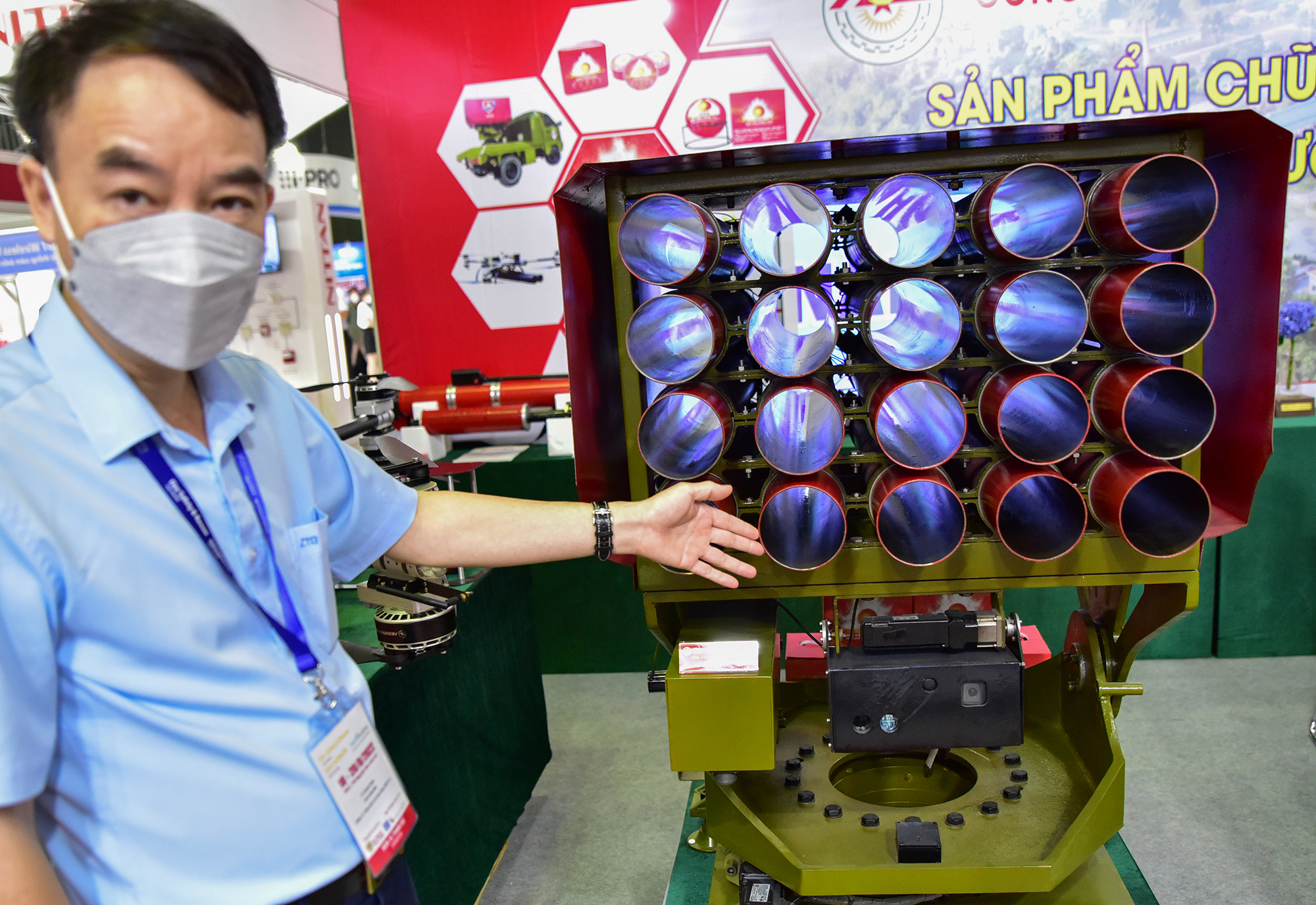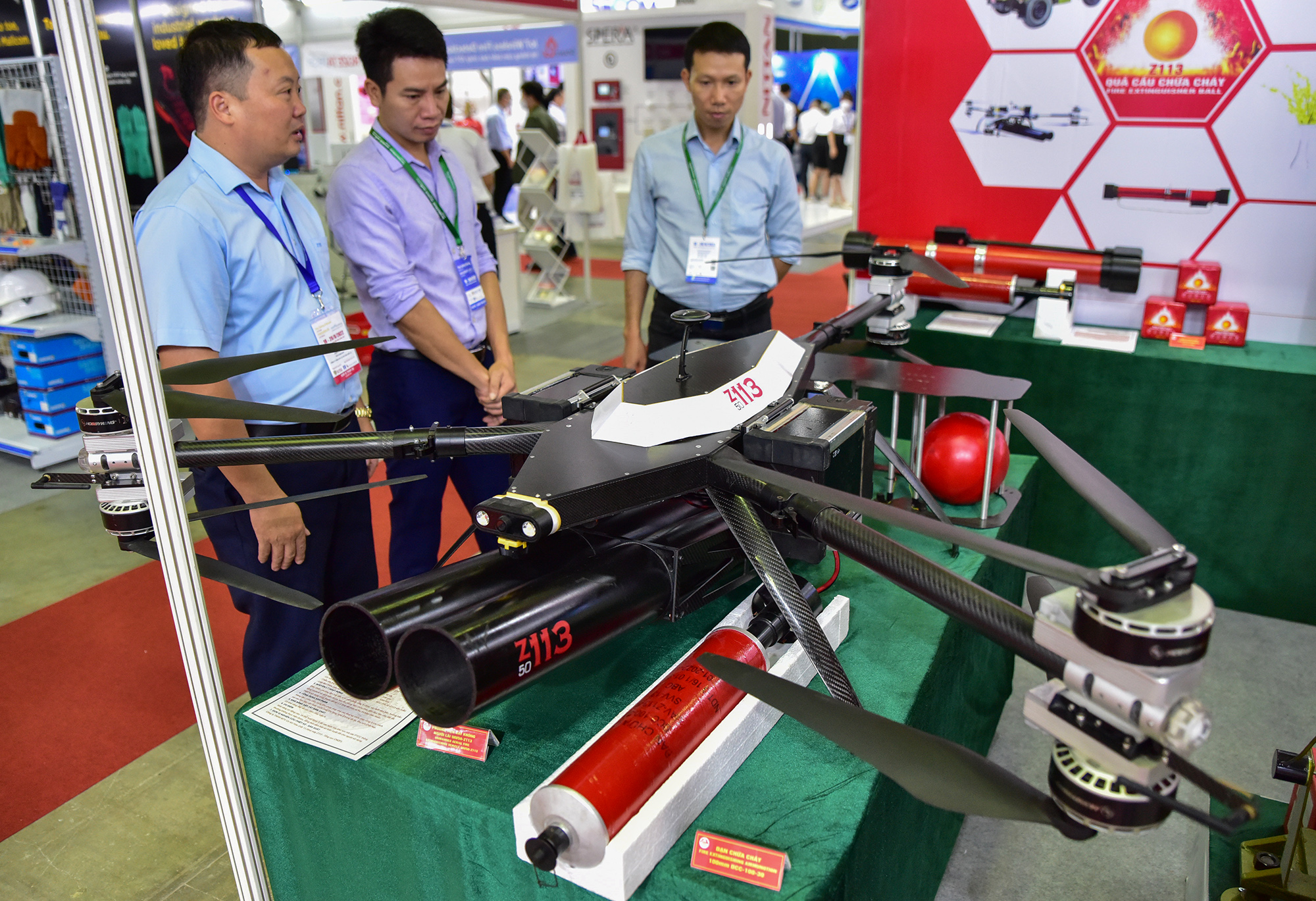 Công ty Cơ khí hoá chất 13 (Nhà máy Z113 - Tổng cục CNQP) nghiên cứu, thiết kế và sản xuất phương tiện bay không người lái chữa cháy có trần bay 500m, bán kính 5000m trong thời gian 20, mang trọng lượng 20kg. Thiết bị được gắn 2 ống phóng cỡ nòng 100mm phóng đạn chữa cháy. Khi bay đến vị trí đám cháy 5-30m, thiết bị xác định tầm bắn, hướng bắn bằng camera và cảm biến đo xa, sau đó phóng đạn chữa cháy đến mục tiêu cần dập tắt.