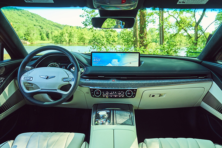 Mẫu xe điện đến từ thương hiệu hạng sang thuộc Hyundai còn có các chi tiết ốp gỗ và ghế bọc da Nappa với sưởi, làm mát và chỉnh điện cho hàng ghế trước. Những điểm nổi bật khác gồm vô-lăng bọc da có sưởi, kính nhiều lớp cách âm, và trần xe bọc vật liệu cao cấp.