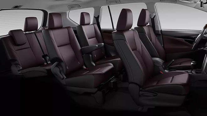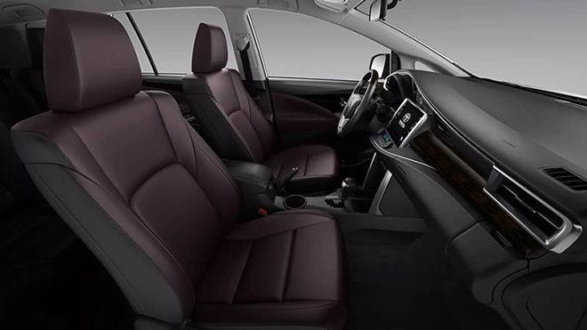 Toyota Innova thế hệ mới được phát triển trên nền tảng Toyota Hilux 2016 nên khoang nội thất rộng rãi, trang nhã và tiện nghi hơn thế hệ cũ. Tổng thể màu nội thất được phối hợp hài hòa với tông màu be chủ đạo và có một số chi tiết ốp vân gỗ rất sang trọng.