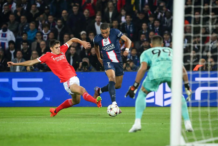 Mbappe bị các hậu vệ Benfica kèm rất sát