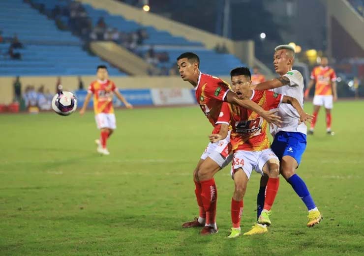 Nam Định (áo trắng) tiếp tục chuỗi trận toàn thua lên con số 3 và đứng rất gần vị trí xuống hạng