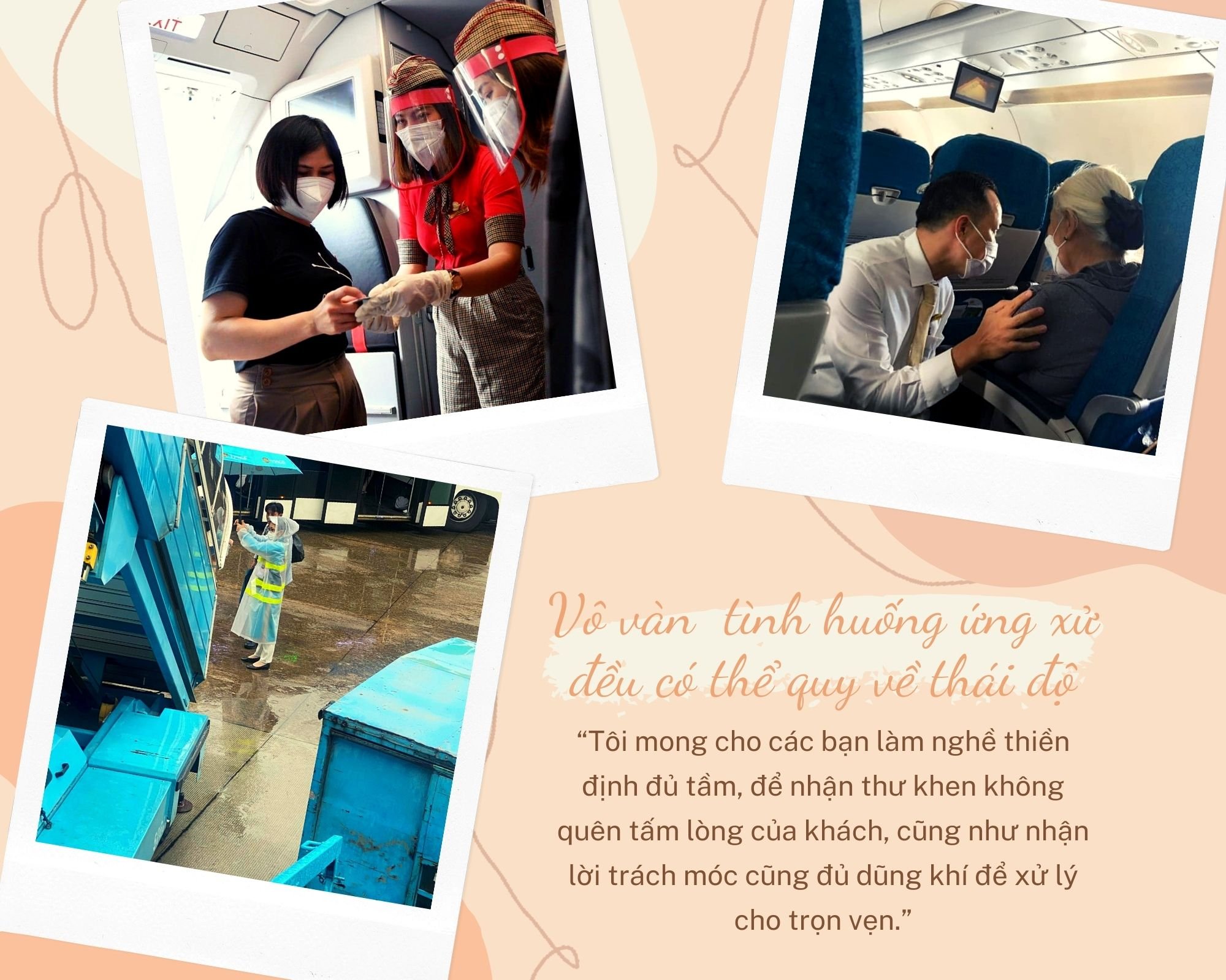 Những ngày trời mưa rét, dưới mặt đất sẽ thấp thoáng đâu đó những bóng hình mảnh mai, đội mưa, che ô cho khách xuống sân bay. Ở trên không, có những cô gái mang giày cao gót chạy đi chạy lại hơn chục lần chỉ để chăm sóc cho một hành khách. Tất cả đều được thực hiện với một nụ cười, một câu cảm ơn.