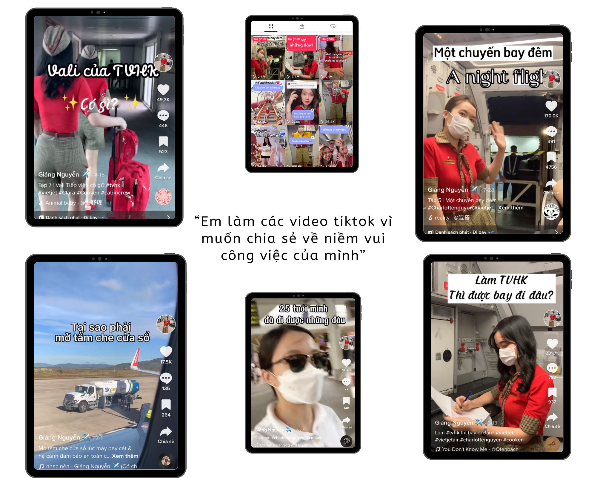 Giáng đã quyết định ghi lại và chia sẻ tình yêu công việc và niềm vui trên mỗi hành trình của mình. Nhiều video trên Tiktok của Giáng đã có lượt view lên tới hàng triệu. Bên cạnh rất nhiều lời khen ngợi, cô tiếp viên hàng không cũng đôi lần đọc được những nhận xét thiếu thiện chí hoặc nhắc đến những vụ việc không hay về tiếp viên hàng không. Những lúc như thế, Giáng thường chọn bỏ ngoài tai.