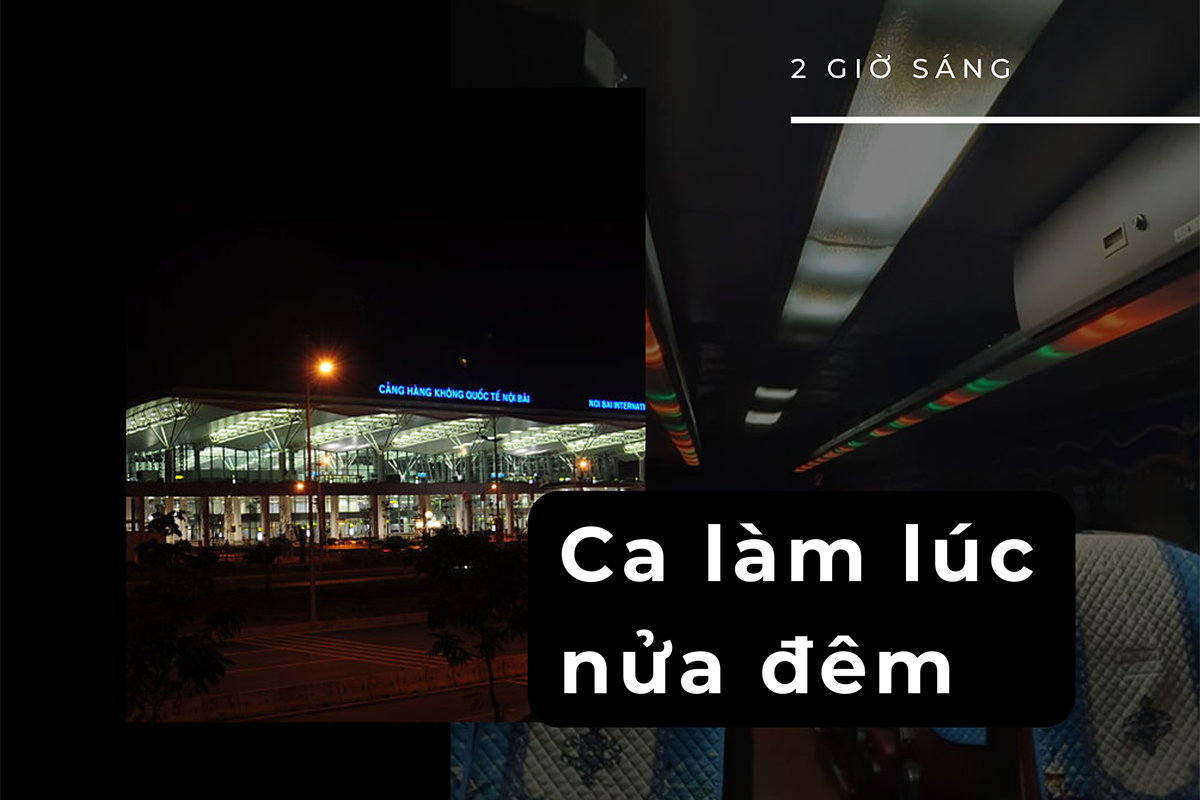 2 giờ sáng, khi cô con gái 3 tuổi vẫn còn ngủ say, chị Linh kéo chiếc va li chuẩn bị từ chiều hôm trước rời khỏi nhà. Ngày tháng 10 gió mùa về, ngoài trời vẫn còn tối đen, chị lên xe bus tới phi trường, bắt đầu ca làm của mình. Thường các chuyến bay đêm cũng là các chuyến bay nước ngoài. Thời gian bay khoảng 4 đến 5 tiếng nhưng tính cả thời gian chuẩn bị dưới mặt đất, ca làm việc thường kéo dài hơn 10 giờ đồng hồ.