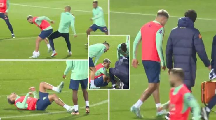 Tuy nhiên, ở buổi tập hôm qua (16/11), một sự cố đáng ngại đã đến với ĐT Brazil. Trang GE globo mới đây đã đăng tải đoạn video clip ngắn ghi lại cảnh tiền vệ trung tâm Bruno Guimaraes phải sớm rời sân vì chấn thương gót chân sau khi ngôi sao của giải Ngoại hạng Anh bị Fabinho, ngôi sao của Liverpool vào bóng quyết liệt quá mức.