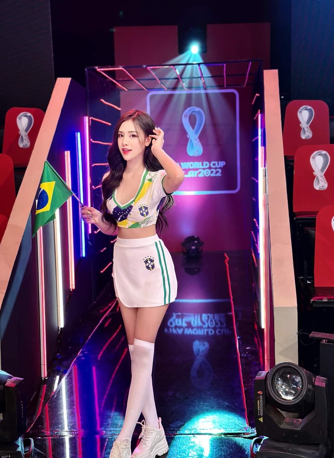 Theo đó, khi được hỏi về sự cố nói đội tuyển Chelsea đá World Cup, hot girl sinh năm 2001 lý giải: "Tôi không nói Chelsea tham dự World Cup. Nếu ai xem số hôm đó thì đều biết tôi chỉ nhầm Chelsea và đội tuyển Anh ở cuối, khi tôi đang trả lời theo mạch câu hỏi của MC. Nên tôi nghĩ đó không phải lỗi lầm nghiêm trọng quá nhưng chắc chắn tôi còn nhiều thiếu sót, phải trau dồi thêm".