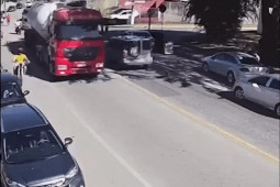 Nữ tài xế ô tô mở cửa xe thiếu quan sát khiến người đi xe máy va chạm ngã vào gầm xe bồn đang đi tới, may mắn người đàn ông thoát nạn chui khỏi gầm xe.
